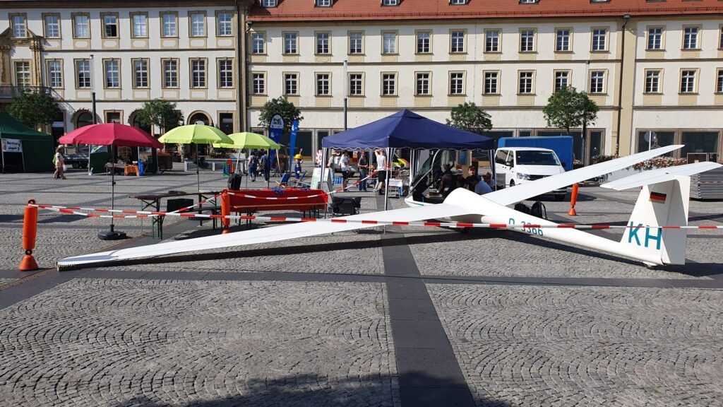 Eine Gruppe Jugendlicher des ACB trotzten der Hitze und vertrat uns am Tag der Jugend auf dem Maxplatz. Leider war das Interesse der Bevölkerung nicht so groß wie erhofft, trotzdem konnten wir reichlich Information unter das Volk bringen und uns erfolgreich präsentieren – immerhin ist ein Segelflugzeug mitten in der Stadt ein echter Hingucker.Wir freuen uns schon darauf, nächstes Jahr wieder bei den Bamberger Bürgern Gast zu sein.