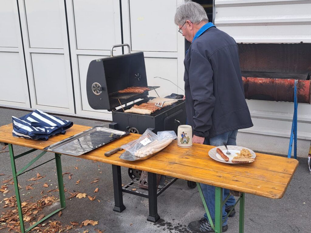 Nach einem zweistündigen Rundgang traf man sich im Hangar 2 zum wieder aufgelebtem traditionellen Bratwurstessen. Sogar bei unserem alten Wirt Abramo (lass Dich grüßen, alter Pizzabäcker!) gab es einige Zeit lang „ Italienische Bratwürste“.
