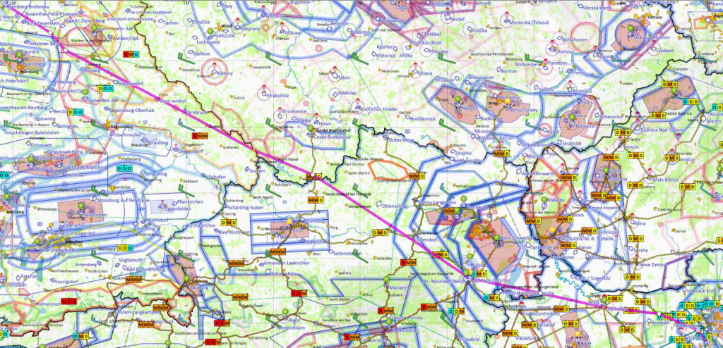 Samstag, 27.07. soll es losgehen. Also Flugplan am 25. schon aufgegeben mit irgendeiner Route, die keinen besonderen Regeln folgt. Klar ED-R umfliegen und in Wien auf die Gnade der Controller hoffen (klappt eh fast nie).