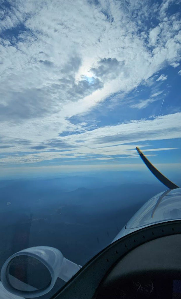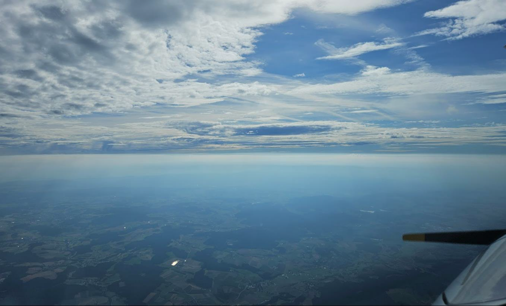 Laut meinen Kraftstoffberechnungen müsste ich mit knapp 20L Reserve bei dem Wind in Bamberg ankommen. Falls es schlimmer wird, gehe ich entweder in Pilsen oder Regensburg runter zum Tanken. In Österreich erhalte ich dann die Freigabe für 12.000ft, was mir jedoch nicht viel bringt. Die Wolken türmen sich schnell auf und ich muss immer wieder um Kursänderungen bitten, um das schlechte Wetter zu umgehen und in VMC zu bleiben. In Tschechien habe ich genug davon und ich gehe auf ca. 7.000ft runter.