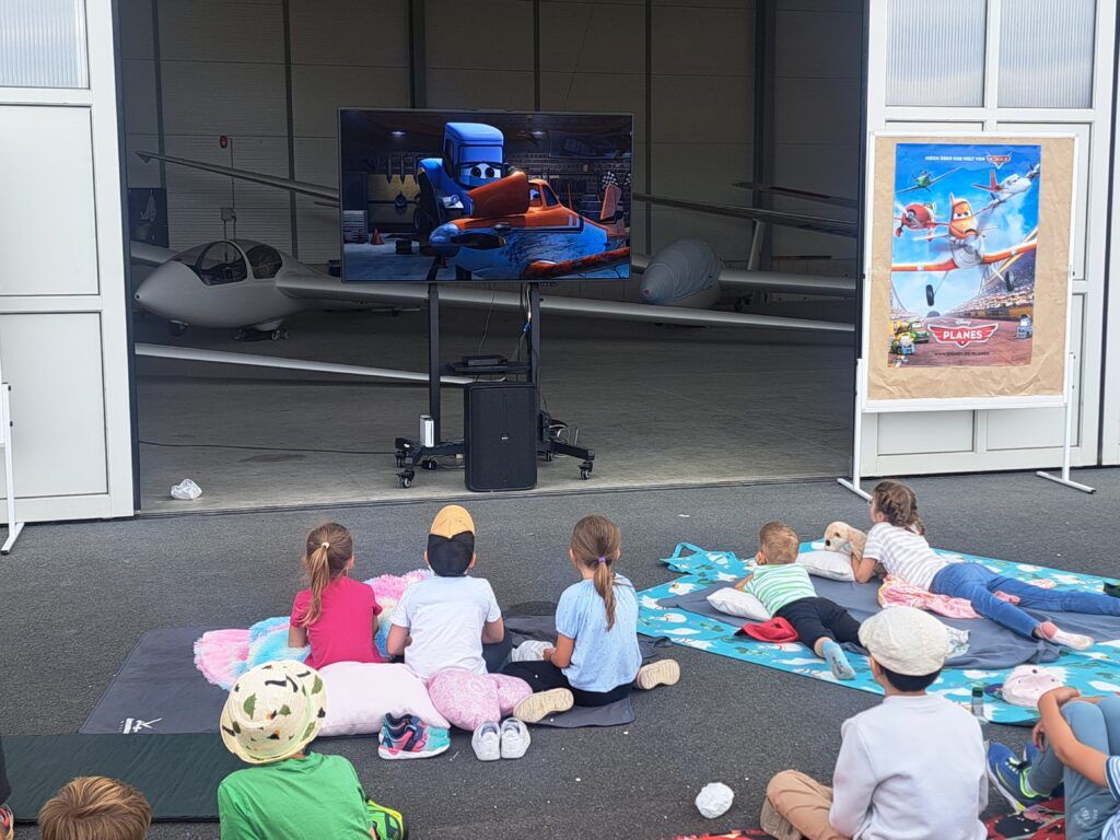 An einem Freitag im Juli lud das Helferteam vom Nikolaus bei bestem Wetter die Kinder des Vereins zu unserem ersten Kinoabend im Freien ein. Nach einer kleinen Forschertour, bei der Probesitzen in Segelflugzeugen, einer Besichtigung des Towers und natürlich dem Feuerwehrauto angesagt war, gab es zur Stärkung Bratwürste vom Grill.